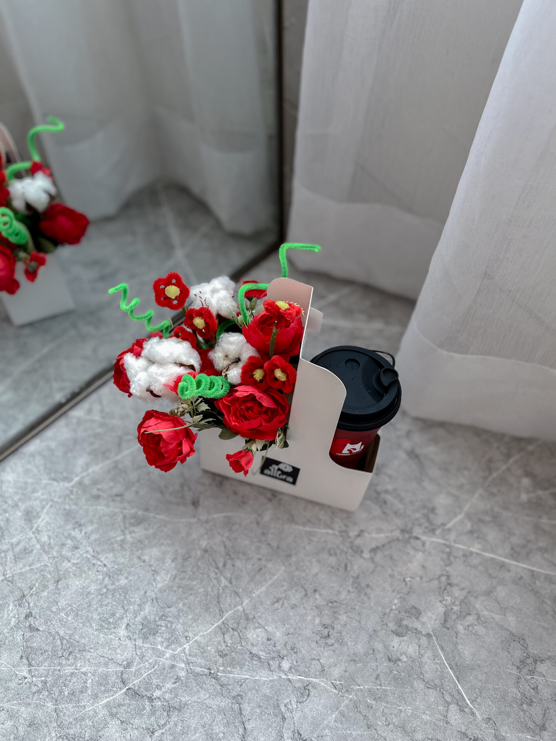 Carol Coffee box white made from ARTIFICIAL flower baby peony and Spanish Latte.