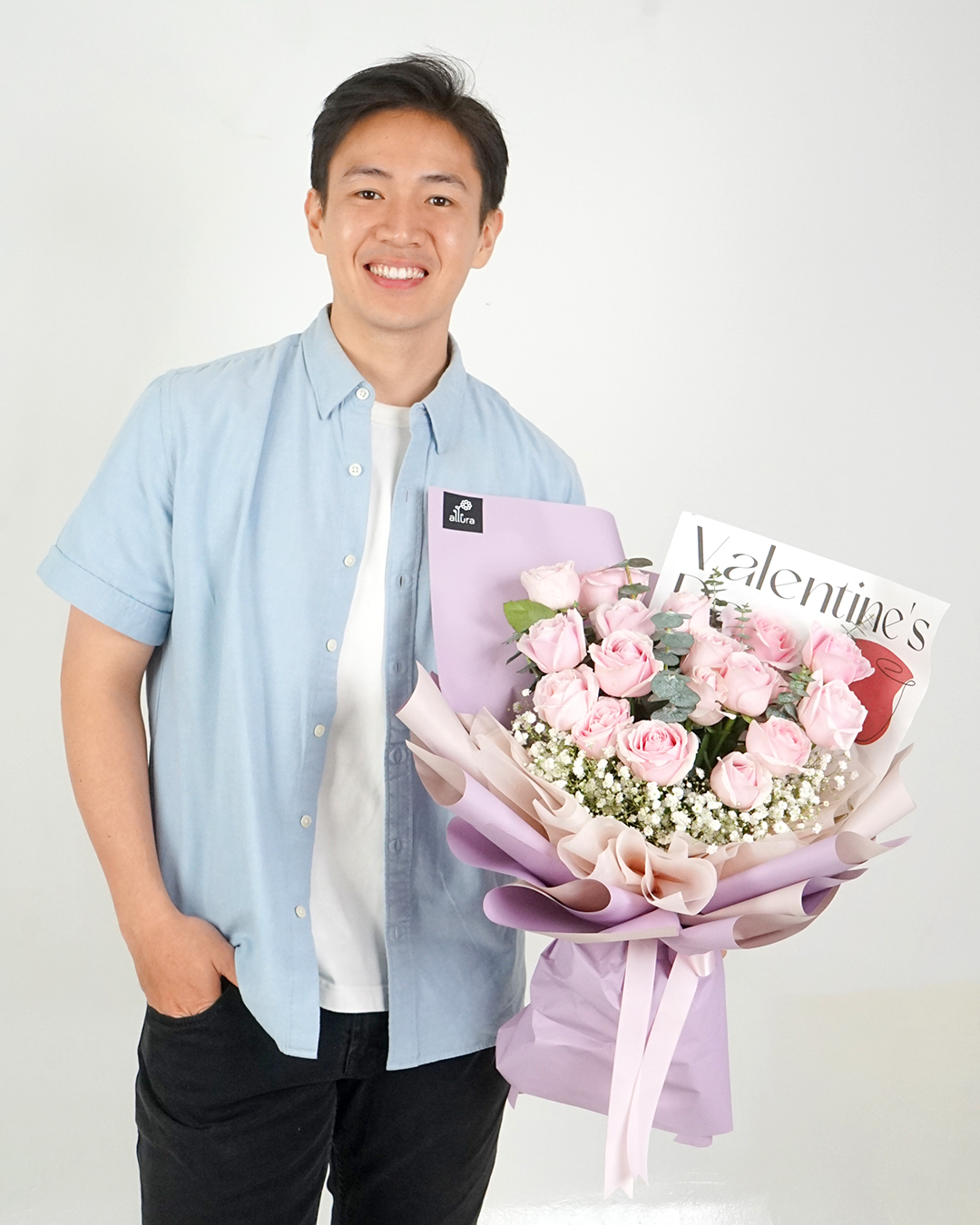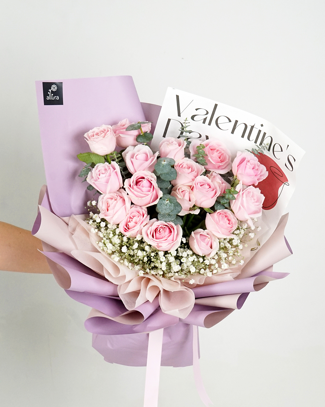 20pcs pink rose semi import, completed with foliages & babybreath with authentic korean styles wrapping for valentine!